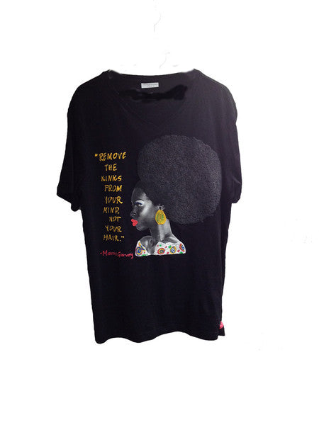 I made this Natural Hair t-shirt, creating this  Curly  Kinky image with my very special mixed media technique and I have painted it in relief, with my Permanent Colors on relief