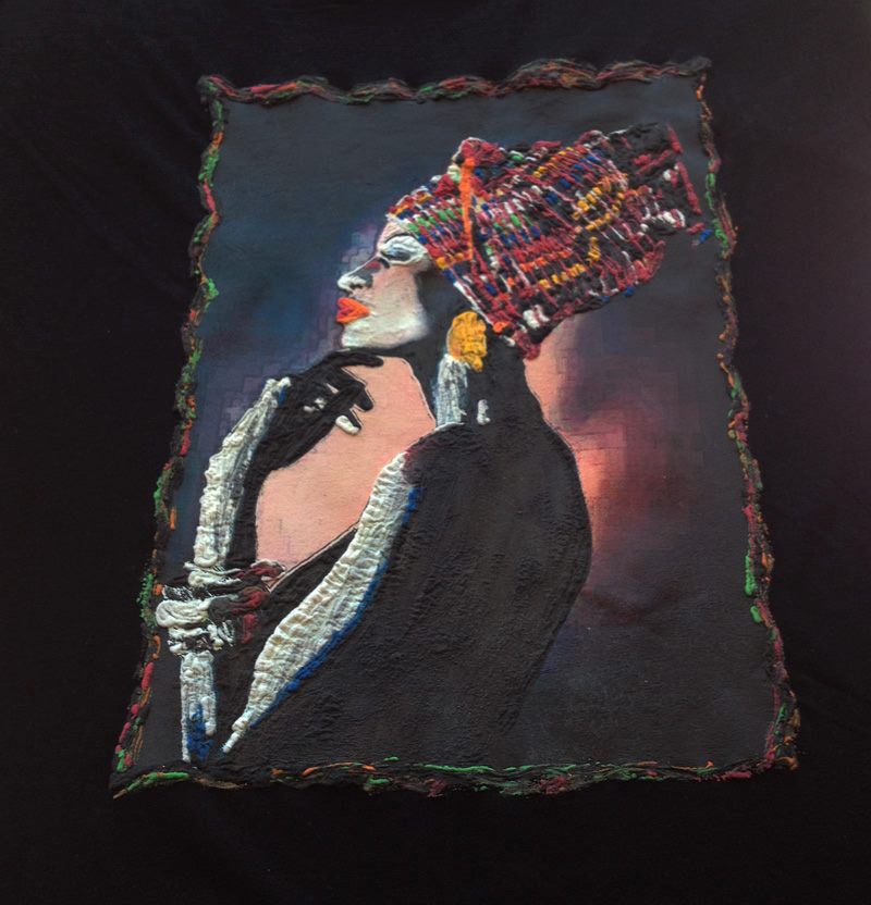 I will paint for YOU YOUR unique T-shirt, this wonderful Black Queen with Colorful head wrap