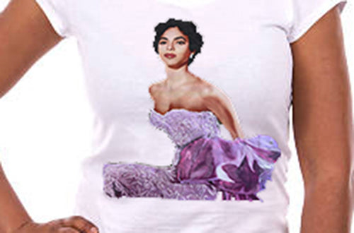 I will paint for YOU, on YOUR unique T-shirt, this wonderful Dorothy Dandridge's image, as a Princess in purple dress