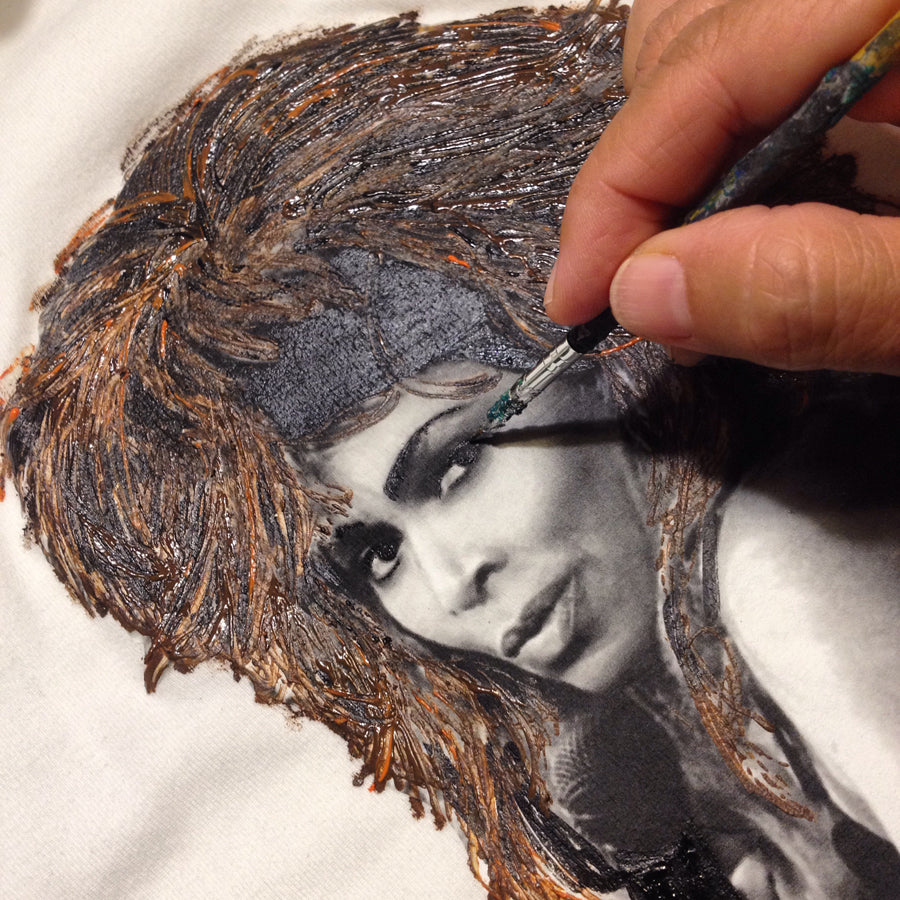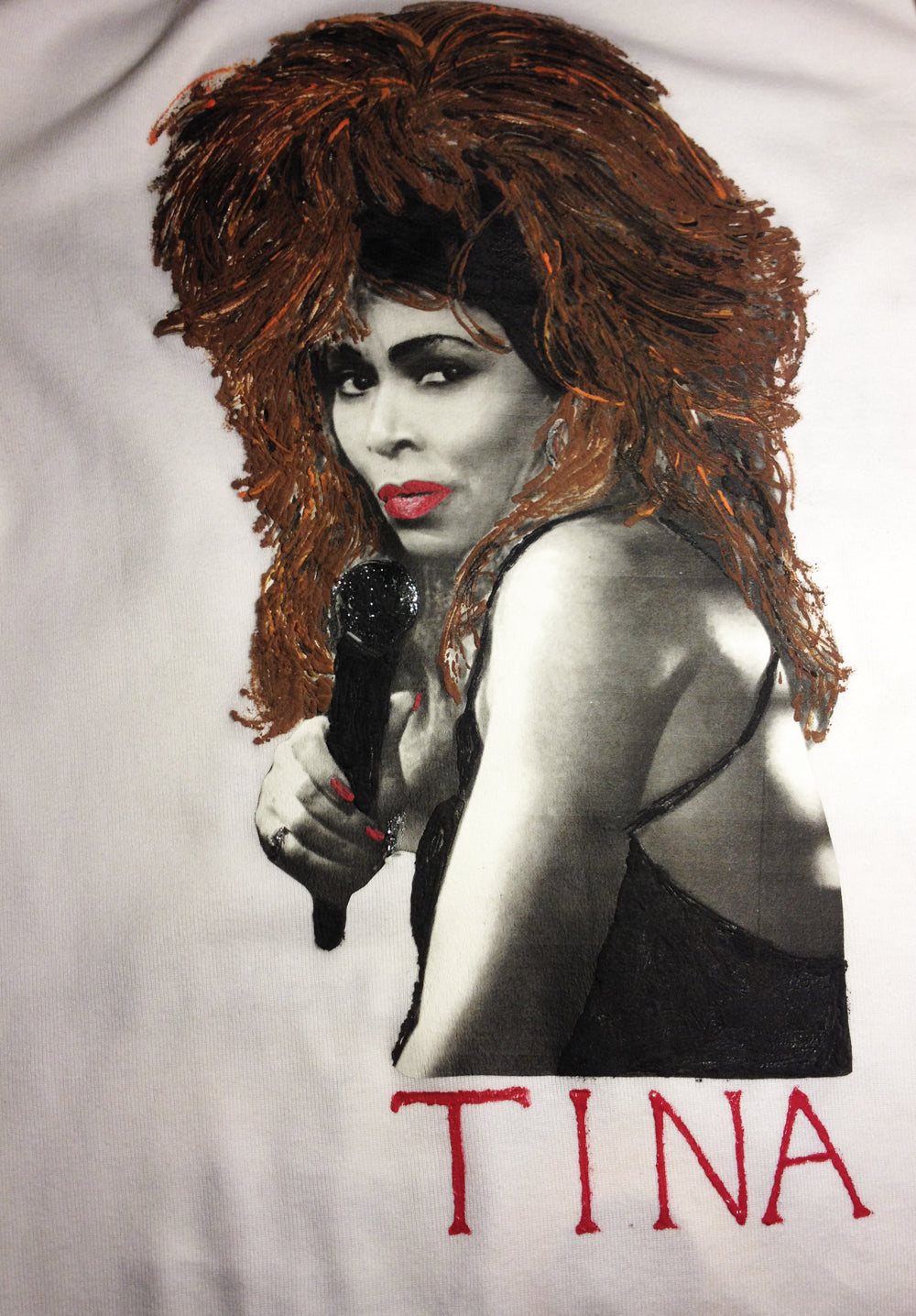 Buy my Tina Turner Tee shirt  and you will wear an artistic T shirt  hand printed and painted by me  on YOUR Demand,  with my unique technique using Permanent Colors on relief