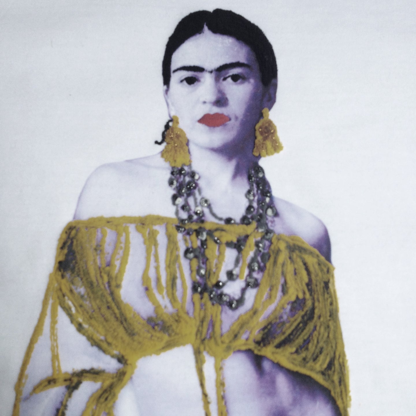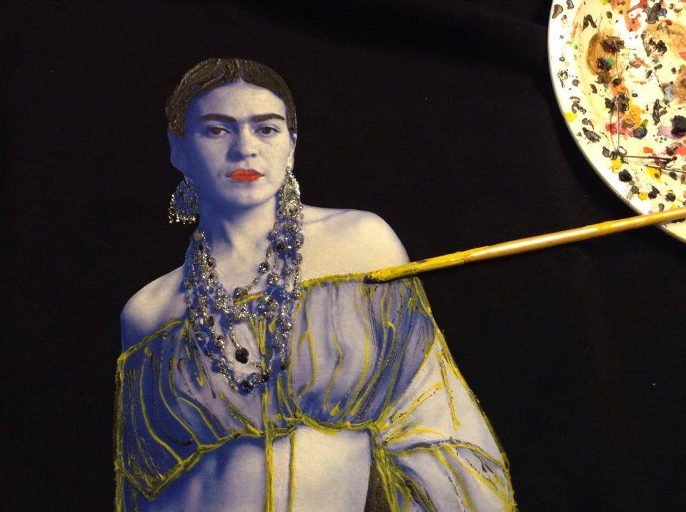 I will realize this Frida Kahlo art t-shirt on YOUR request. handprinting and painting the Frida portrait with my unique technique, using my Permanent Colors on relief