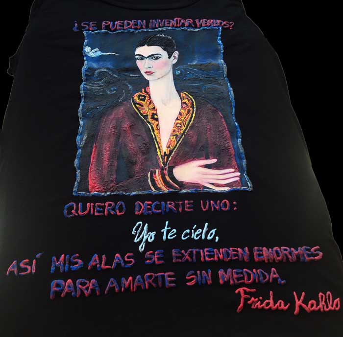Frida Kahlo T-shirt AUTORRETRATO CON TRAJE DE TERCIOPELO Painted 3D Self Portrait in a Velvet Dress Tshirt