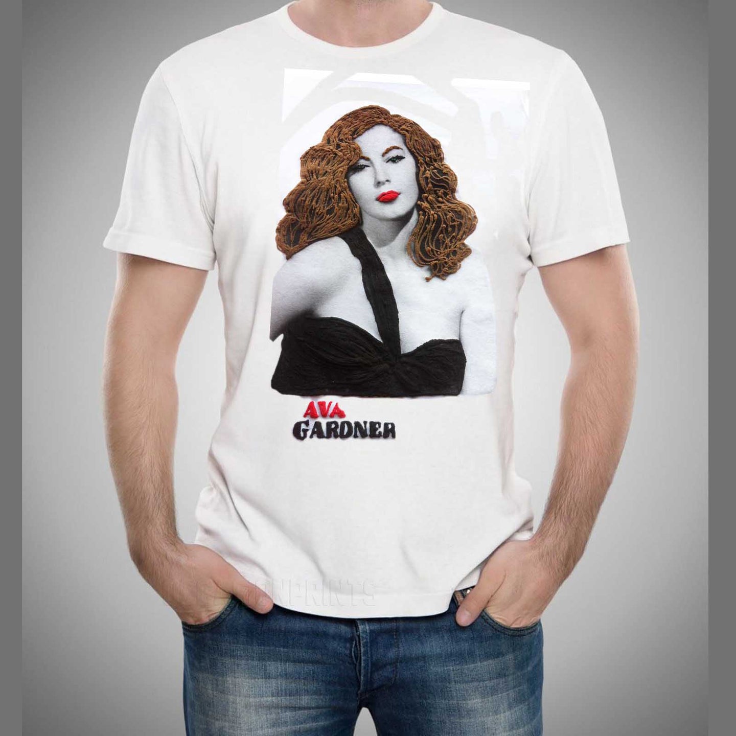 I love Hollywood stars and movies   so,  with my Timeless artistic  T shirts I want to give my tribute to the amazing Ava Gardner, great interpret of  many of them,  and I want to make you dream when you wear the T-shirt with her portrait that I will realize for YOU