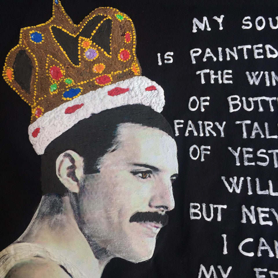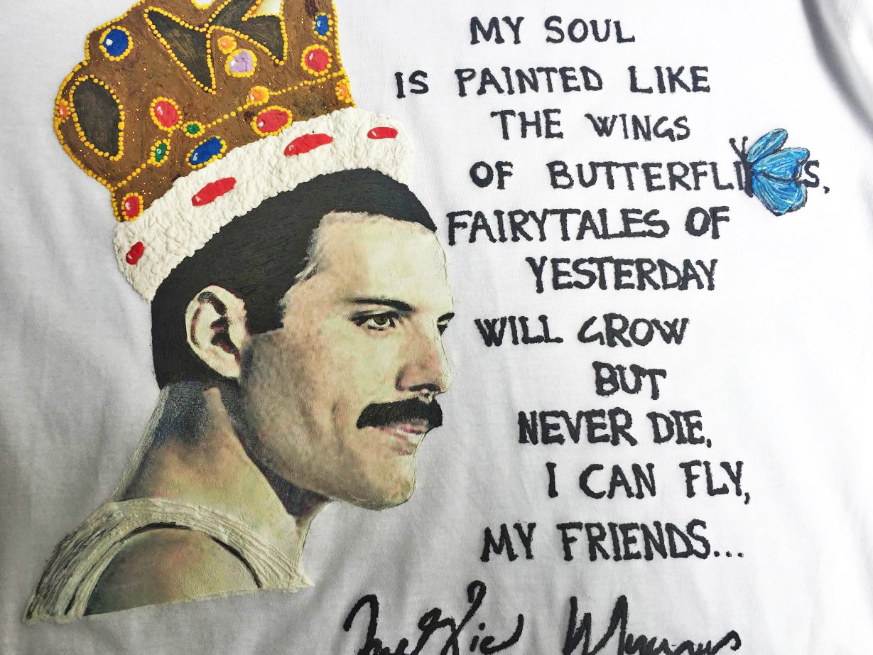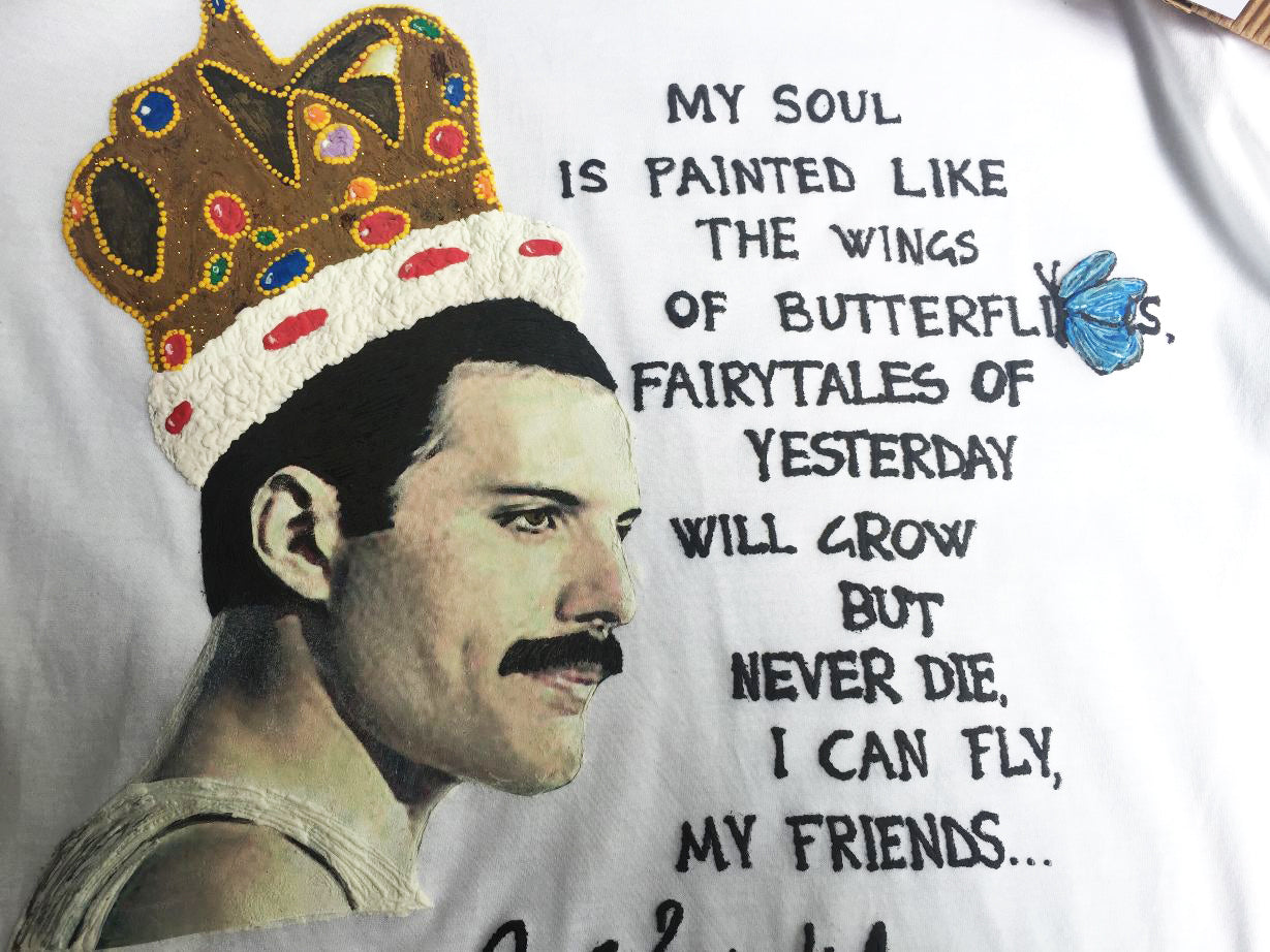 Freddie Mercury with Crown Painted Shirt – “I Can Fly, My Friends”
