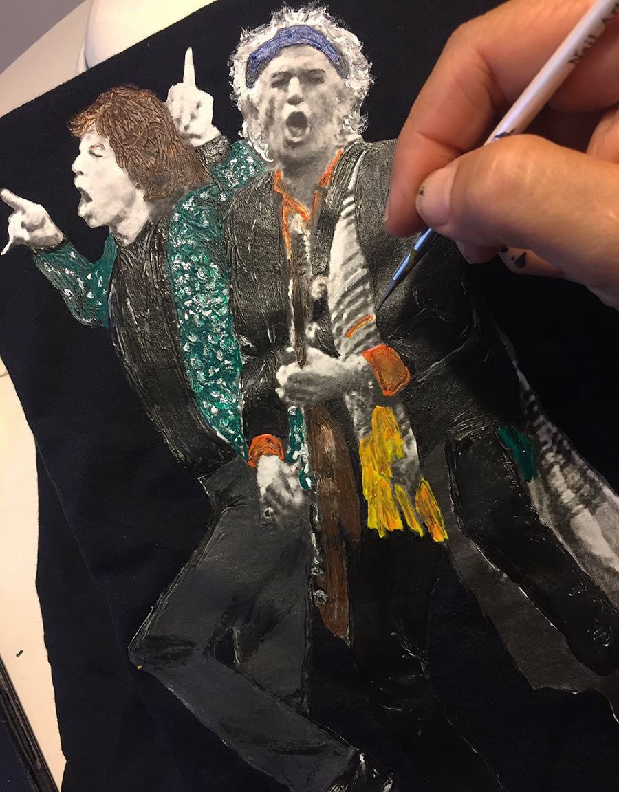 Hand-Painted Mick Jagger & Keith Richards T-Shirt – Rock Icons in Action