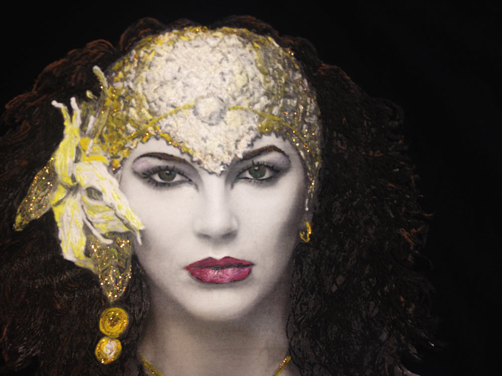 So ...I will print by my hands and paint for YOU, on YOUR Artistic T-shirt, this fabulous Kate Bush with golden bonnet