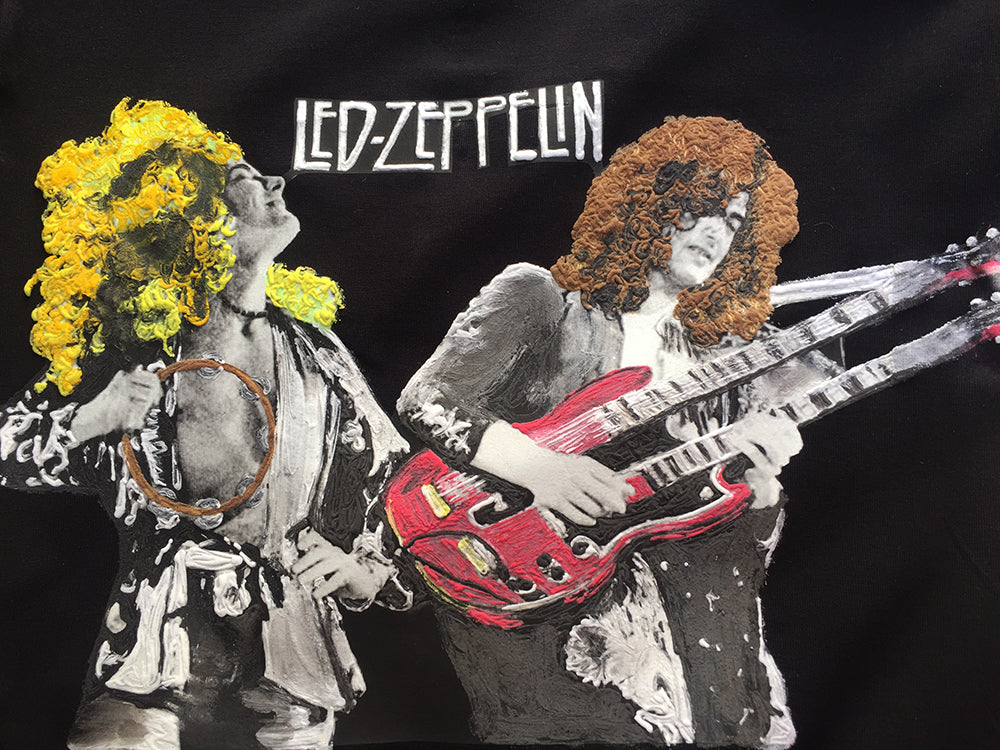 On my Artistic T-shirt I will paint 3d, On YOUR Demand, the vocalist Robert Plant and the great guitarist Jimmy Page with my UNIQUE technique, using my permanent colors on relief