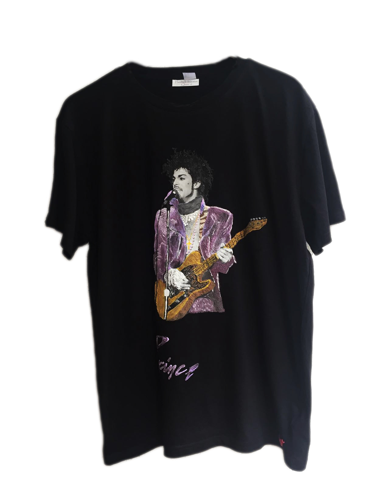 I will hand print and paint this Prince Art T shirt FOR YOU, with Permanent Colors on relief, and you'll  be dazzled by the brightness and brilliance of the colors, because with my technique of painting in relief, the effect is spectacular!