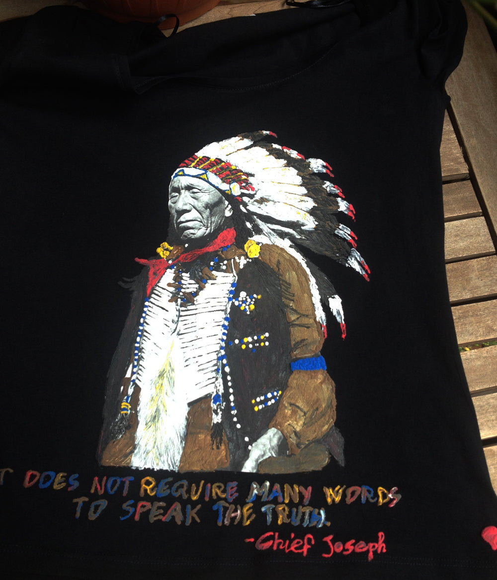 I will be honored to handprint and  paint this beautiful image on YOUR Demand on YOUR unique artistic Chief Joseph T shirt