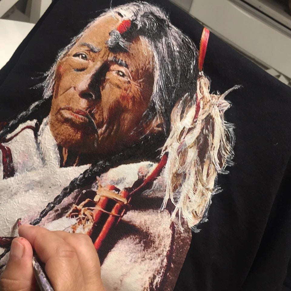 The t-shirt that I will print and hand paint for YOU, with my unique technique and my permanent colors on relief, is one of my tributes that I wanted to dedicate to Native Americans