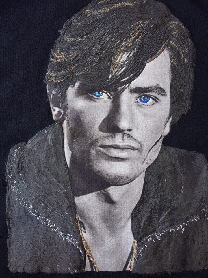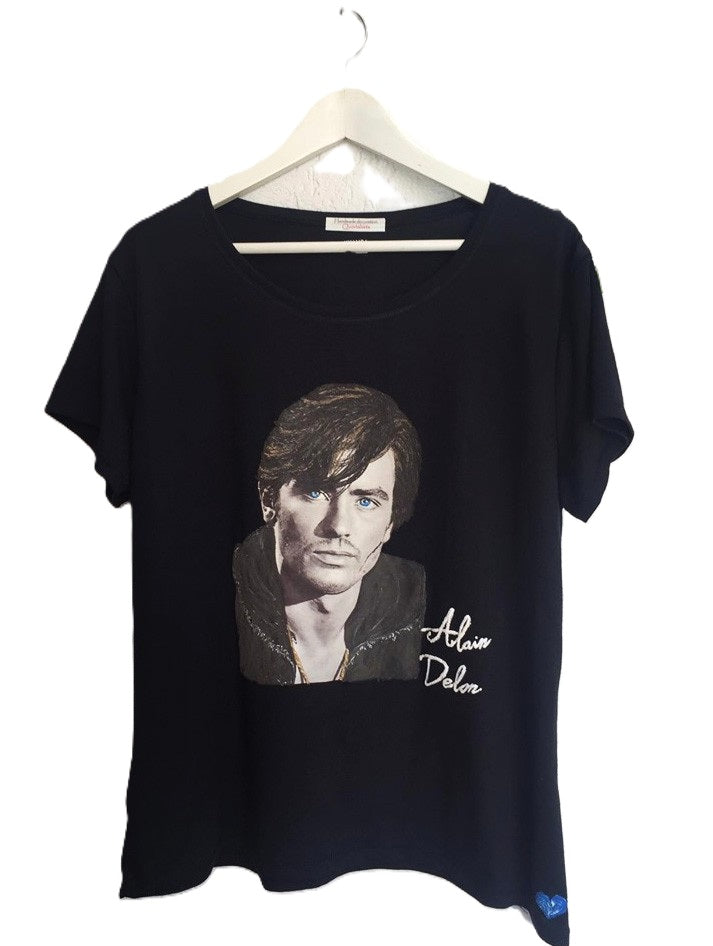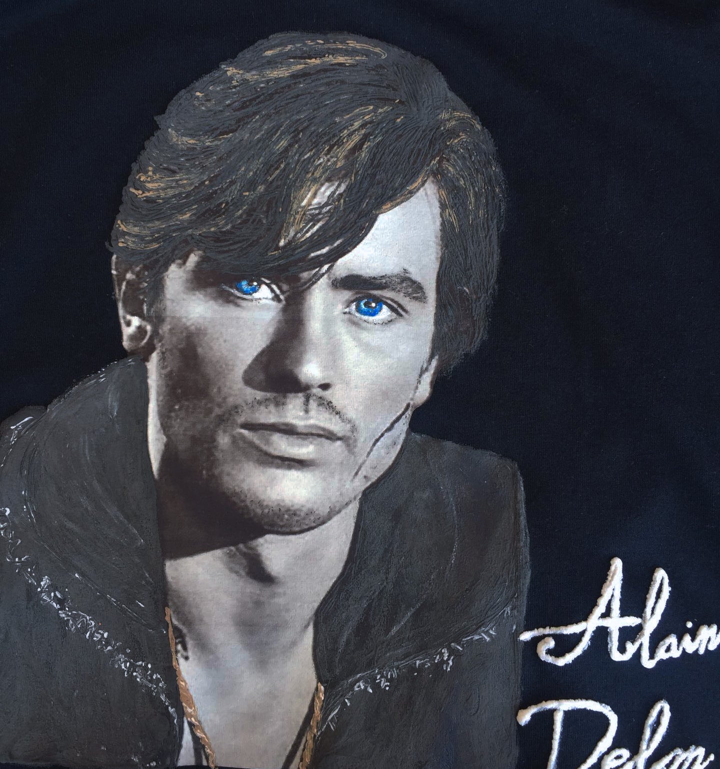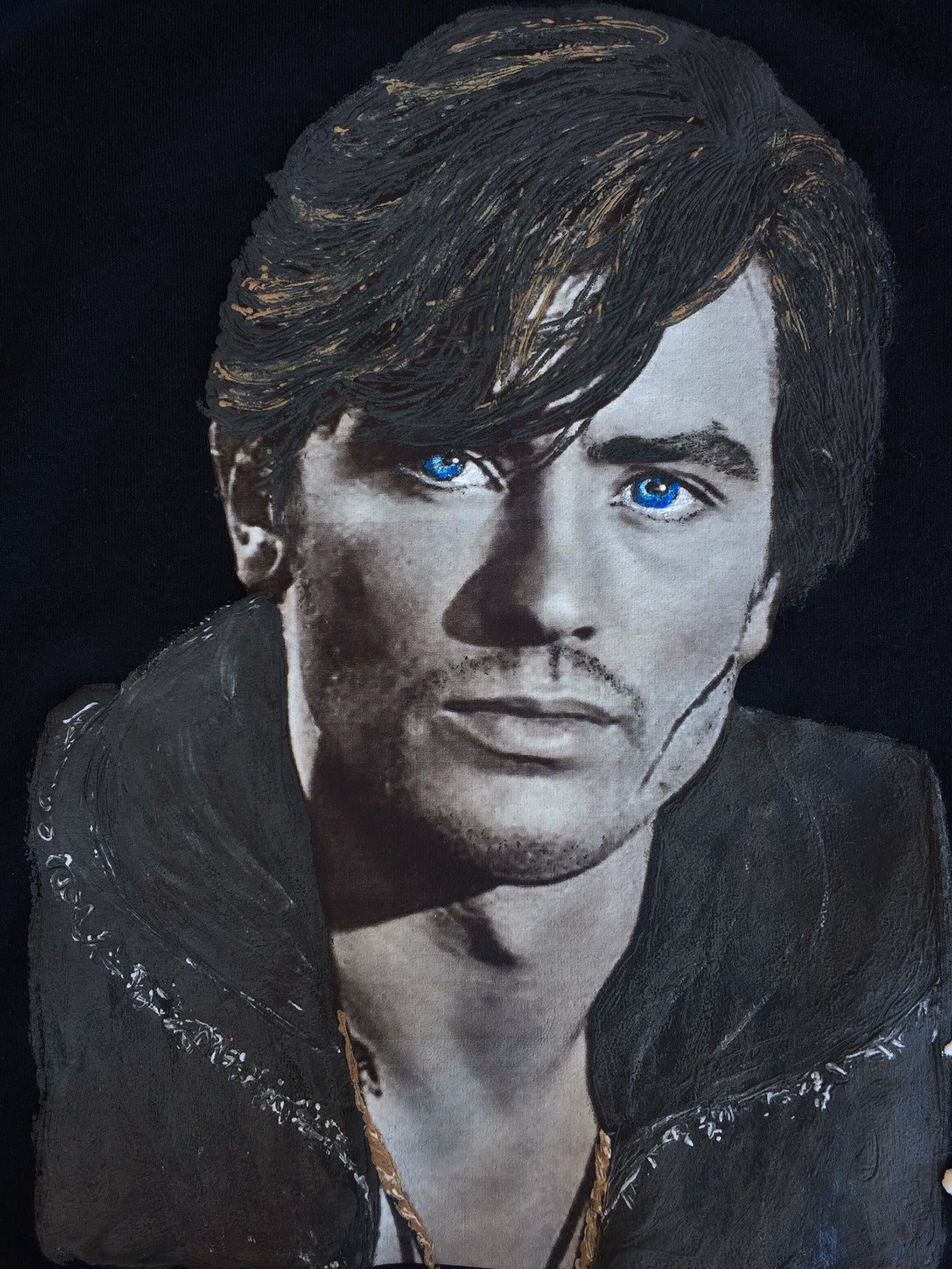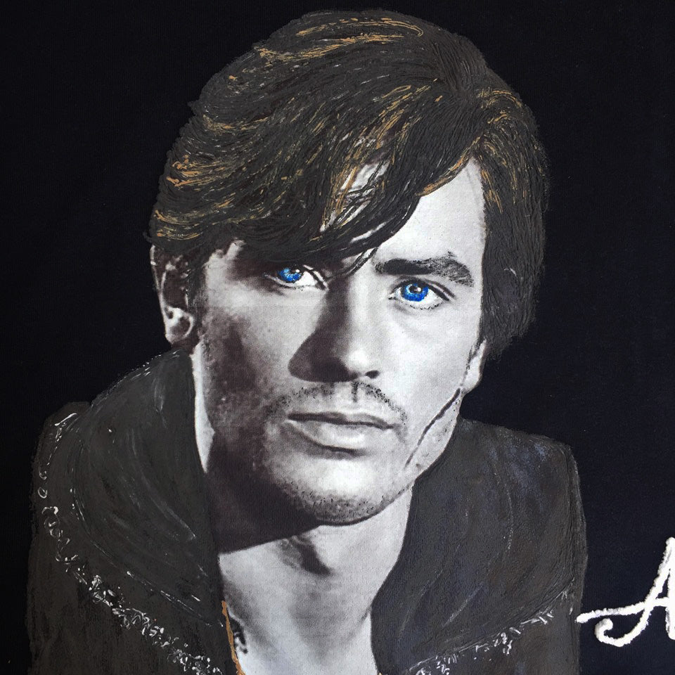 Experience cinematic elegance with my hand-painted T-shirt featuring a close-up portrait of Alain Delon.