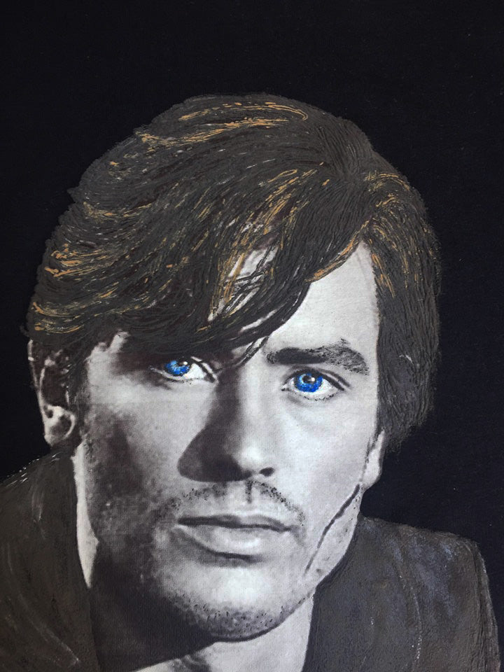 Hand-Painted Alain Delon T-Shirt – Striking Blue Eyes Portrait