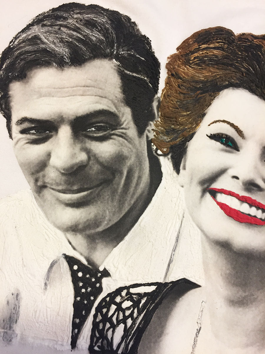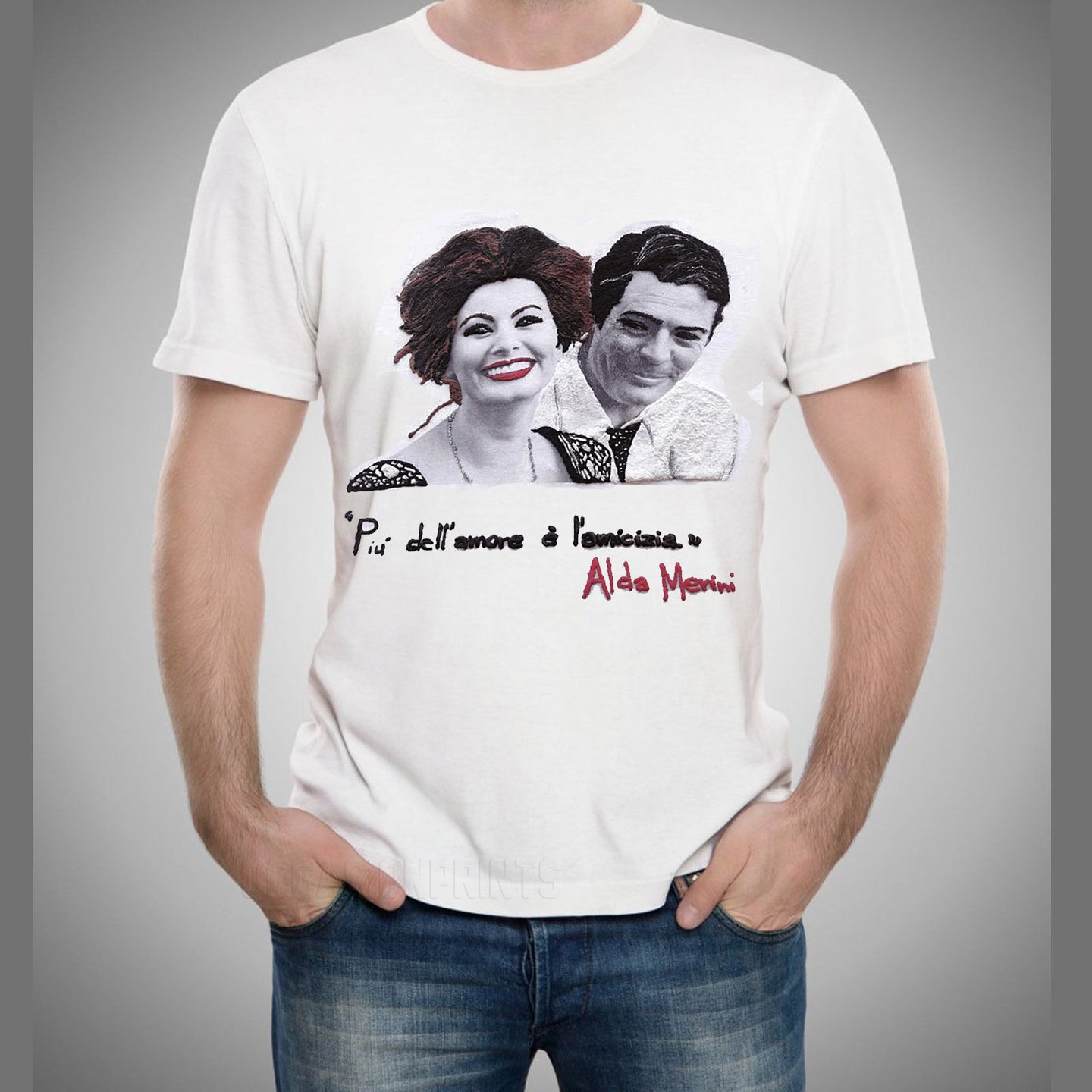 I have realized this Marcello Mastroianni & Sophia Loren Painting T-shirt, adding an aphorism about friendship by Alda Merini ( the famous Italian poet) because it really expresses my thoughts and because Marcello and Sophia were first of all two great friends.
