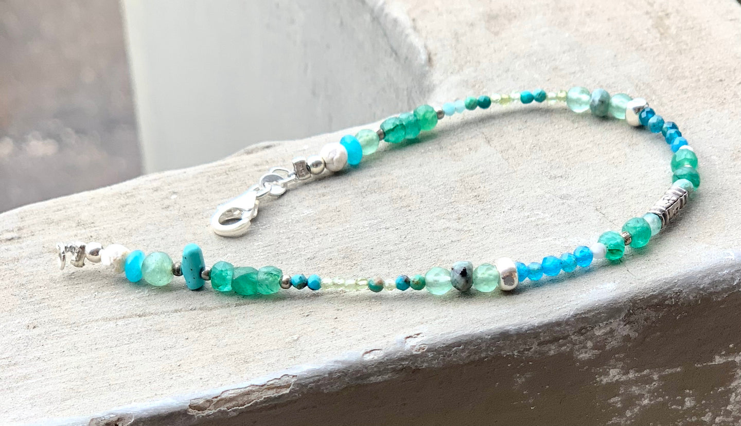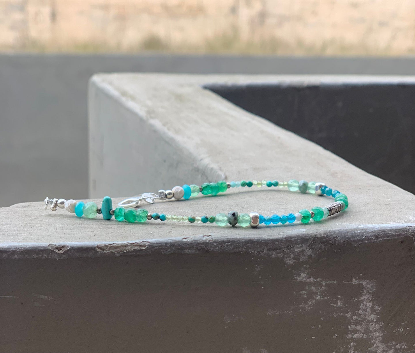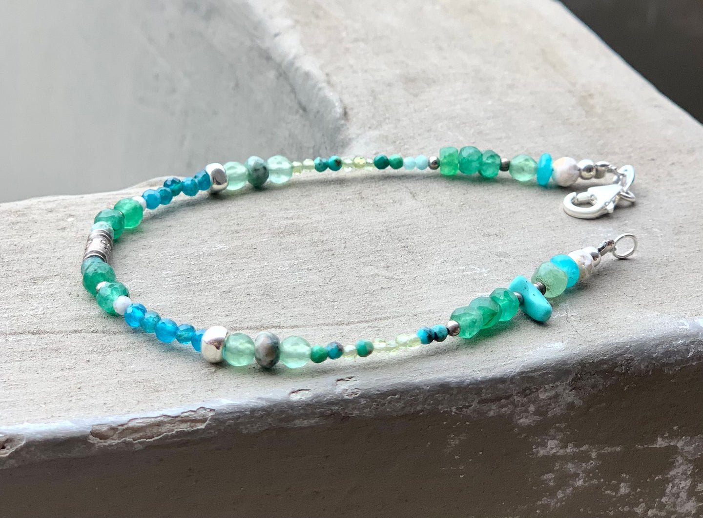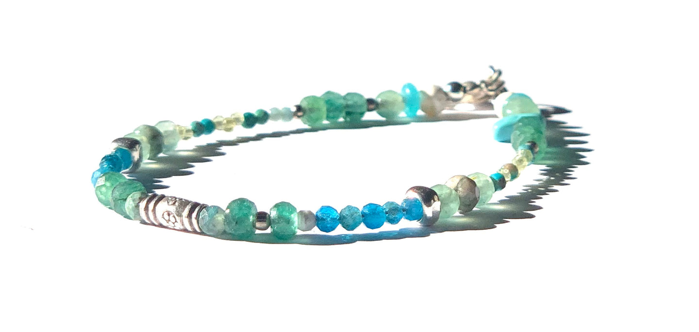 This delicate and one-of-a-kind bracelet is handcrafted by me with love, featuring a mix of beautiful natural gemstones and artisan silver accents.