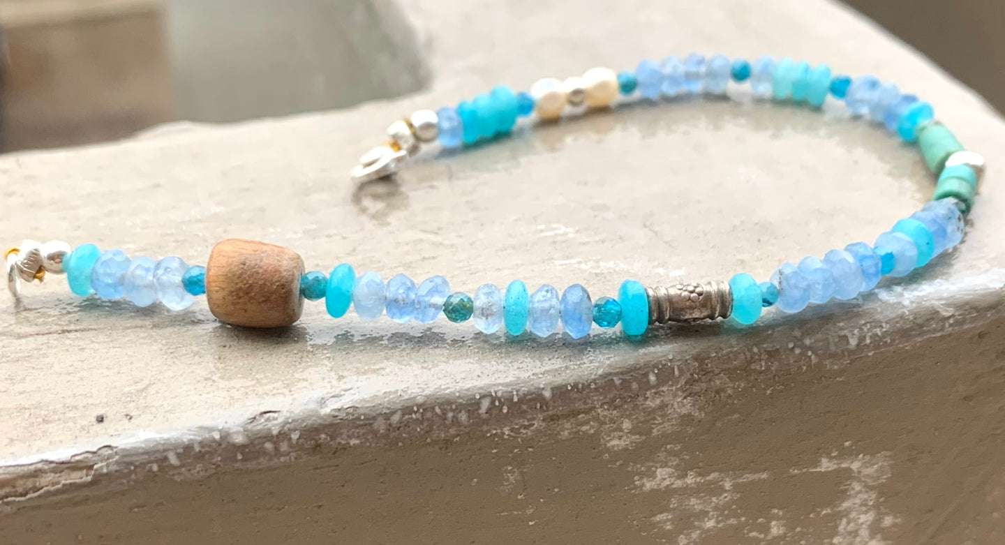 Dainty light Blue Gemstones Bracelet - Calming vibes Bracelet with Agate Jade African Turquoise Apatite Fresh Water Pearls Sterling Silver