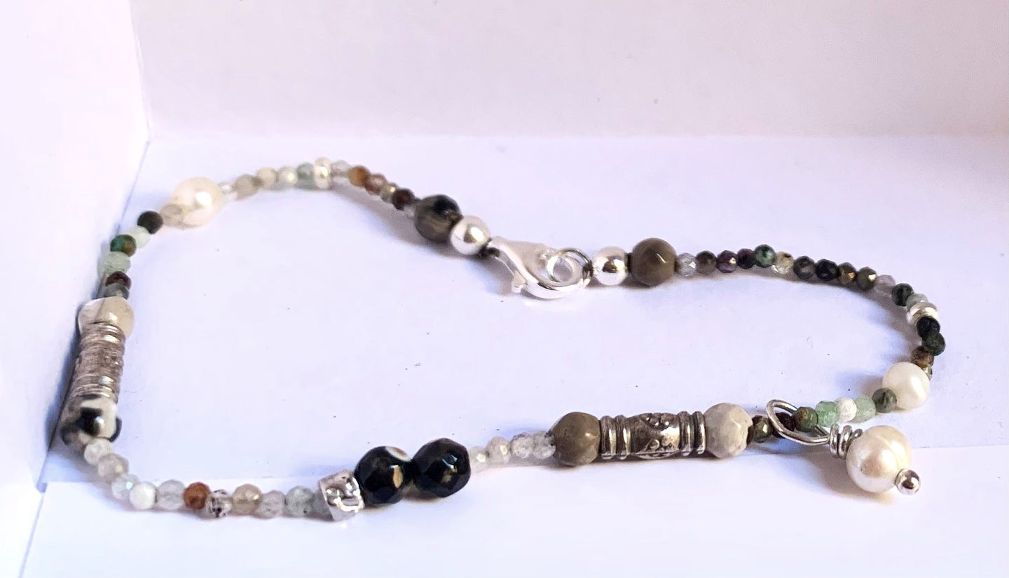 This beautifully handcrafted bracelet is all about grounding energy, gentle protection, and timeless boho vibes. Made by my hands with faceted stones and sterling silver accents from the Karen Hill Tribe, it’s the perfect mix of nature and artistry.