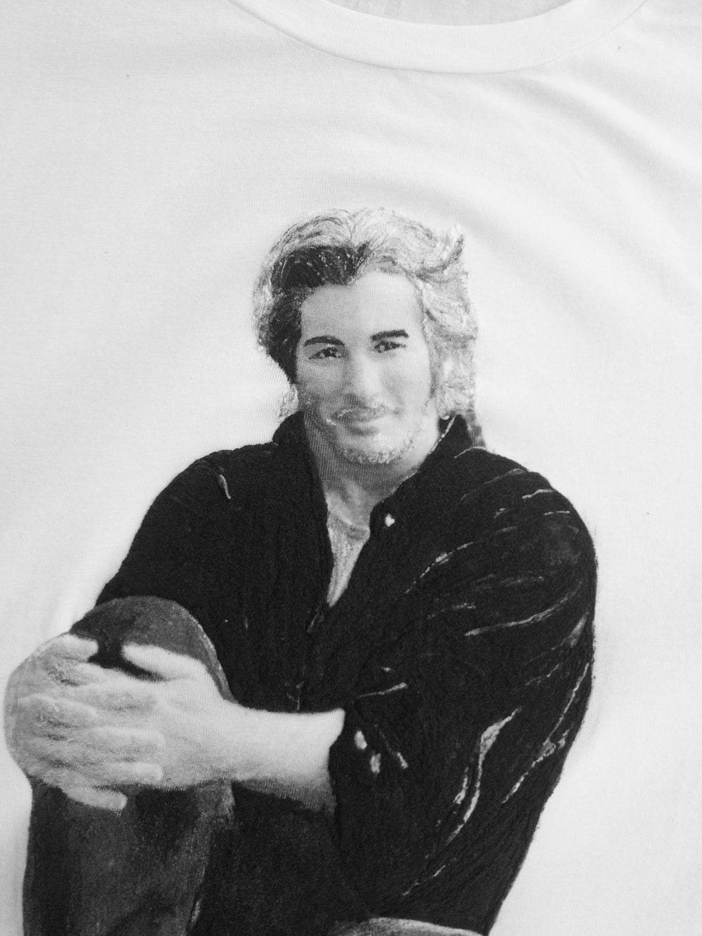 I will hand  print by me and paint  with my unique technique this Richard Gere's portrait, on YOUR tshirt